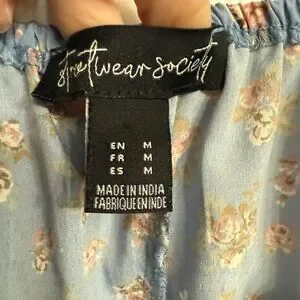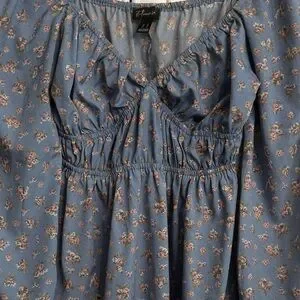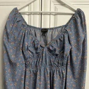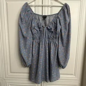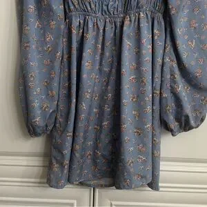 Streetwear Society Medium Blue Long Sleeve V-Neck Mini Dress w/Pink Floral Print