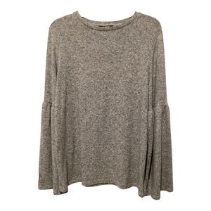 Stylish gray sweater with bell sleeves. Perfect for casual wear. Soft and comfortable fabric. GUC. 21 PTP, Length 26. Imported. Machine Washable. Bell Sleeves. Non smoking home. No pets. Clean and Sanitized.