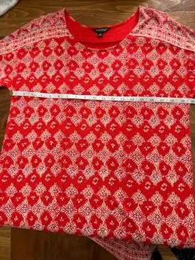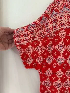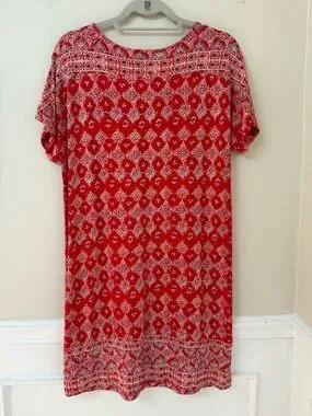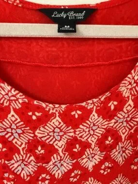 Lucky Brand orange pink blue knee length dress size medium. In excellent used condition with no holes or stains.