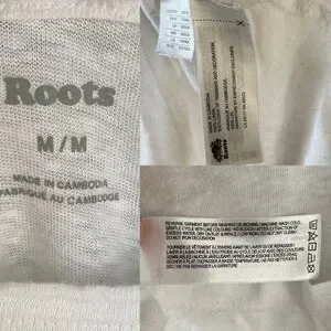 ROOTS White Linen Crew Neck Short Sleeve Oversized T-Shirt M