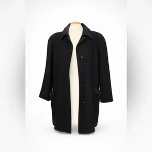 VINTAGE - Black Wool Coat with Shearling Collar | Minimalist Oversized Jacket