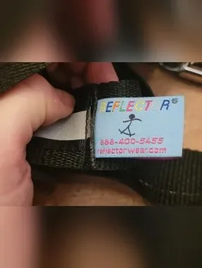 Shiny chrome seatbelt belt with black inset labeled "PRESS". Does up the same as a seatbelt. How fun is that? Attached reflective stripe for safety! Belt is adjustable. Simple, FUN, unique, and functional accent piece.