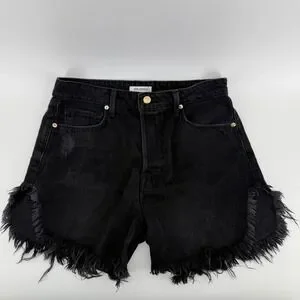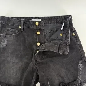 Good American Black Distressed High Rise Cutoff Denim Shorts Size 4/27