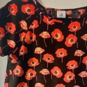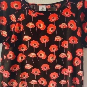 CAbi Black Tee with Red Poppy Print