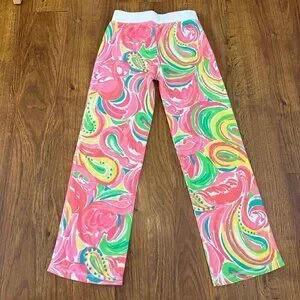 Lilly Pulitzer kids size large 8-10 terry cloth beach pants with drawstring in All nighter Paisley Flamingo print