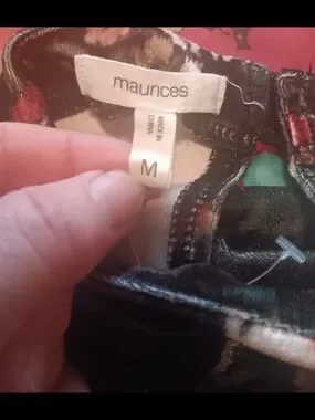 Maurices Black Red Floral Velvet Bodycon Midi Dress Medium