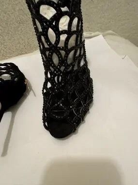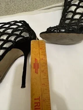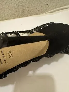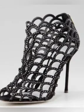 Sergio Rossi Black Scalloped crystal Laser-Cut Peep-Toe Stilettos size 38.5