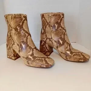 Sam Edelman Destiny Faux Snakeskin Pattern Ankle Boots 3" Heels Sz. 8