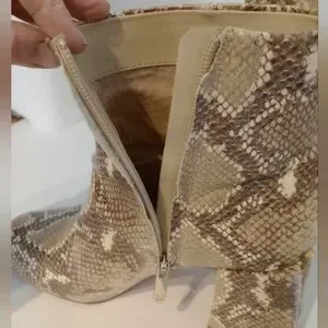 Sam Edelman Faux Snakeskin Ankle Boots. Size 8 with side zipper and 3 inch heels. Super Cool! Good pre-owned condition. CC7