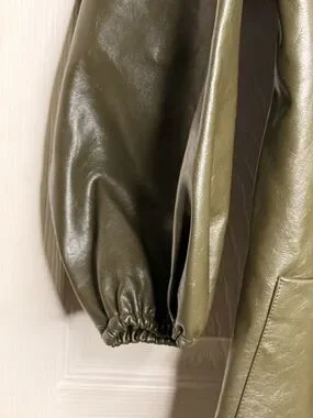 Elevate your everyday style with this rare olive faux leather jacket by p. cill. Worn only once, this piece is in excellent, like-new condition and offers a modern, effortless silhouette that’s perfect for layering year-round.