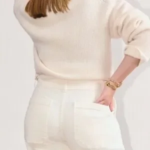 These high-waisted pants feature a relaxed, curved leg silhouette that tapers at the ankle, creating a modern architectural shape. Constructed from a durable organic cotton blend with a hint of stretch, they include classic utility details like deep side pockets, large back patch pockets, and horizontal seam detailing at the knee. A versatile wardrobe staple that pairs effortlessly with tucked-in knits or structured tees.