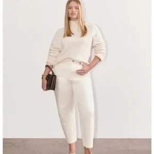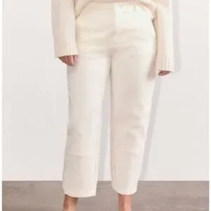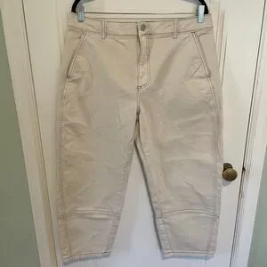 Everlane Utility Barrel Pant Bone White Contrast Stitch High Rise Size 16