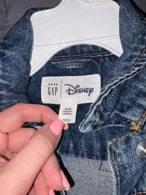 Super cute Baby Gap x Disney denim jacket featuring a bold embroidered Minnie Mouse design on the back 🖤❤️