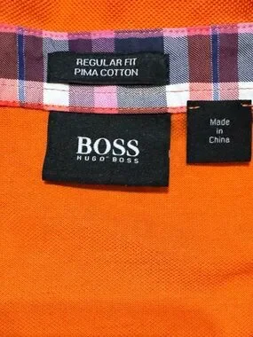 Hugo Boss Orange Polo with Plaid Collar Detail