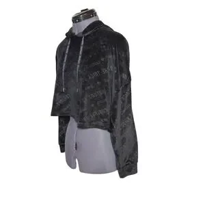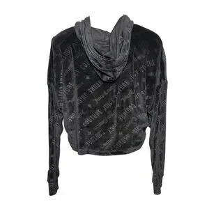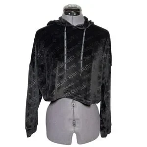 Vtg Y2K Juicy Couture Black Velour Logo Cropped Hoodie size M