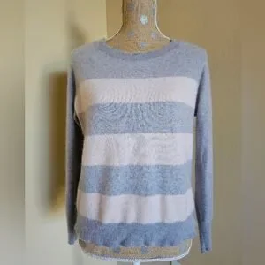 100% Cashmere Gray Cream Striped Sweater Apt. 9