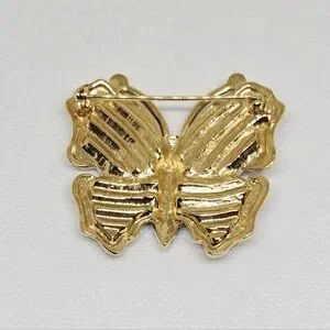 The butterfly design symbolizes transformation and elegance, making this a timeless accessory for both casual and dressy outfits. Perfect for styling on jackets, coats, sweaters, scarves, hats, or handbags. A lovely piece for collectors of rhinestone or figural costume jewelry.
