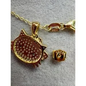 Hello Kitty Moissanite Necklace & Earring Set - Vermeil over 925