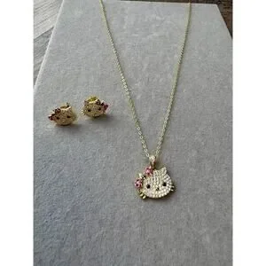 Get ready to shine with this absolutely adorable and brand new Hello Kitty Moissanite Necklace and Pushback Earring Set! This charming set has never been worn and is in pristine, sparkling condition, ready to bring joy to its new owner.