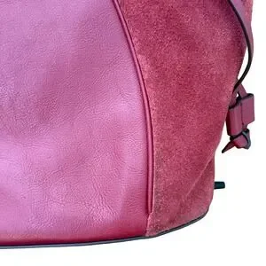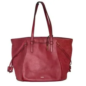 Fossil Charli Leather and Suede Tote Bag Triple Compartment Red Shoulder Bag