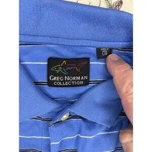 Greg Norman Collection Men’s Large Blue Striped Cotton Golf Polo Shirt