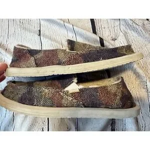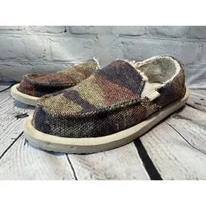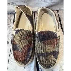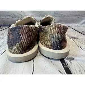 Sanuk Donna Camo Chill Slip On Loafers Faux Fur Lined Earthy Multi Color