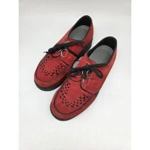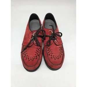 T.U.K. Red Suede Lace Up Creeper Platform Punk Goth Sneakers Unisex Size 5