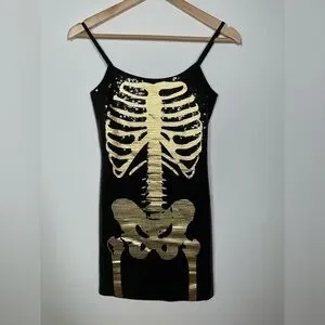 H&M Black and Gold Skeleton Sequin Mini Dress XS