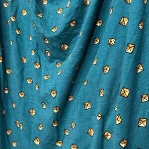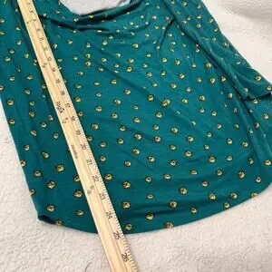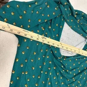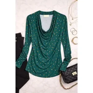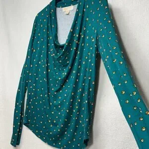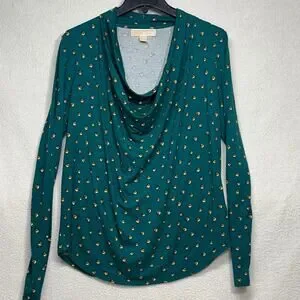 Michael Kors Green Drape Neck Top Medium Gold Print Long Sleeve Blouse