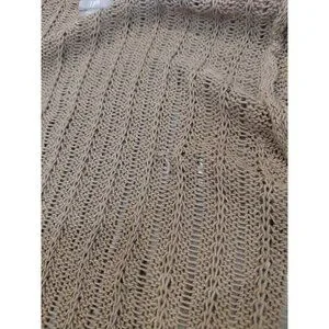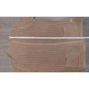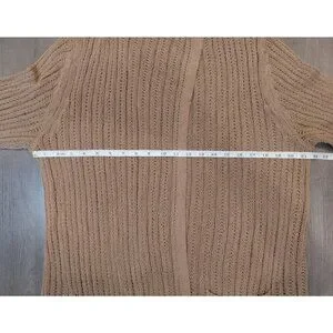 J. Jill Cotton Linen Open Front Cardigan Lg Tan Loose Knit Long Sleeves Pockets