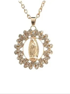Gold Crystal Virgin Mary Pendant Necklace - Women Jewelry