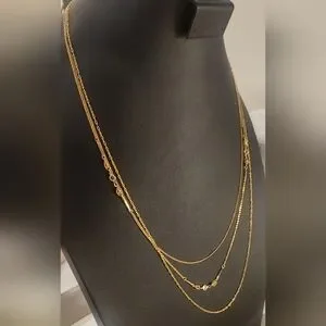 This elegant gold layered necklace adds a touch of sophistication to any outfit. Perfect for any occasion.