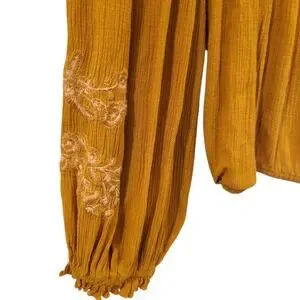 AMERICAN EAGLE Yellow Peasant Top Small Cropped Embroidered Square Neck Boho