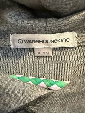 Warehouse One Gray Hoodie with Green & White Braided Detail