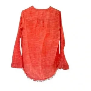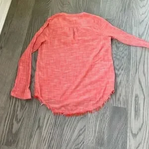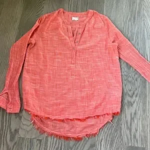 Caslon lightweight spring summer cotton raw hem henley popover coral top Medium
