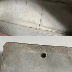Good used condition - some signs of wear and staining / dirt at the inner lining (please see photos). Genuine leather. Bag can be worn as shoulder bag and crossbody. Slip pocket at the back and zipped pocket at the front with two tone hardwares.