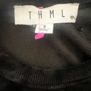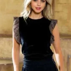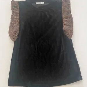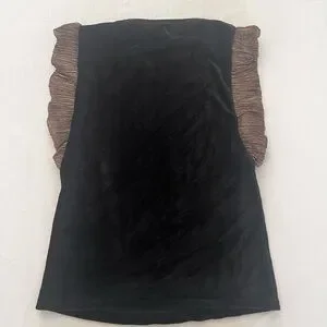 THML Black Velvet Top with Gold Ruffle Sleeves, NWOT