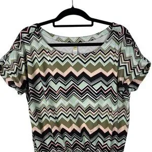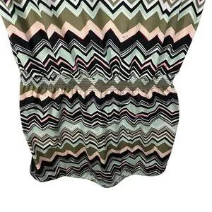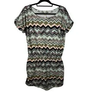 This Lole short sleeve dress is perfect for a casual day out or a beach day. The dress features a boat neckline, cap sleeves, and a pullover closure. The multicolor chevron pattern adds a fun and playful touch to the dress.