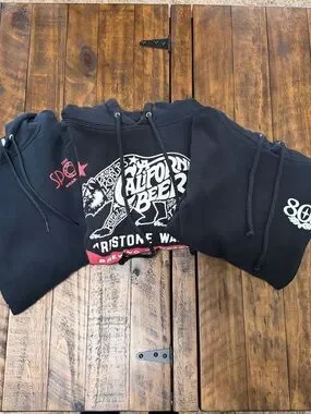 Sizes: 805 Hoodie: M Firestone Walker Hoodie: M The Spoke: L