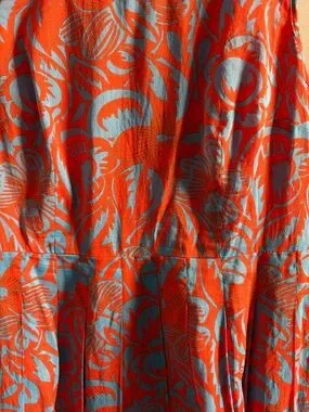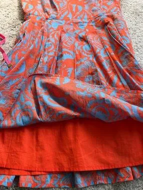 Talbots Orange Blue Floral Sleeveless Cotton Fit & Flare Dress Knee Length SZ 12