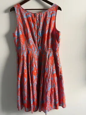 talbots orange blue floral dress sleeveless fit flare summer knee length classic preppy workwear womens dress