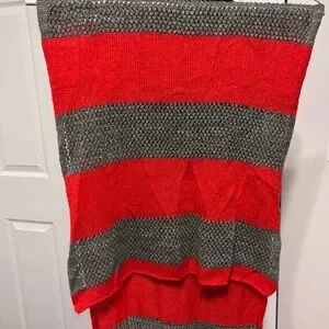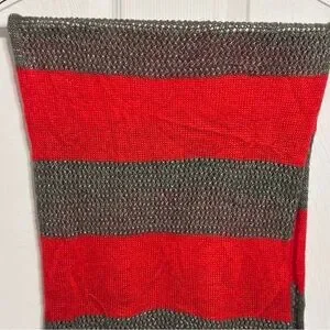 J. Jill Women's Red Gray Silver Sparkles Wide Striped Knit Head Neck Scarf Grey