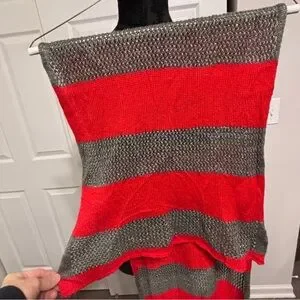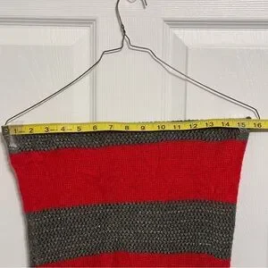 The J. Jill Women's Red and Gray with Silver Sparkles Knit Wide Striped Scarf is a stylish and versatile accessory for women. Made from acrylic material, this headscarf features a classic red and gray striped pattern with silver sparkles for added glam. Perfect for a variety of occasions, perfect for Christmas. With a timeless minimalist look, this casual chic scarf doubles as a neck warmer, making it a practical and fashionable addition to any woman's wardrobe.