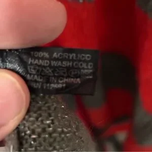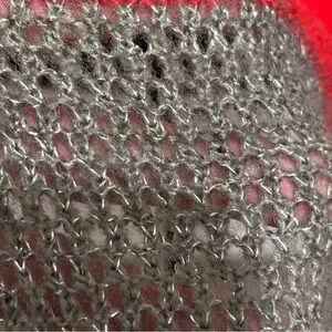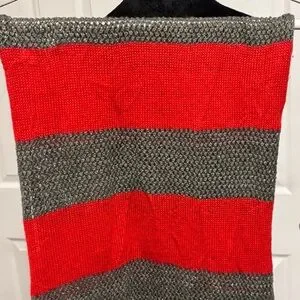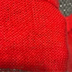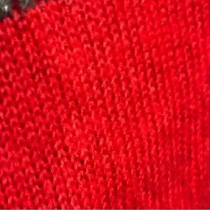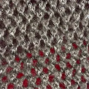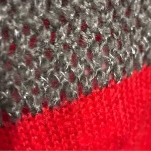 Red areas are more tightly knit, whereas the grey/silver is open knit leaving small holes.