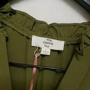 NWT Entro Olive Green Tiered Maxi Dress Sz L Puff Sleeve V-Neck Boho Cottagecore