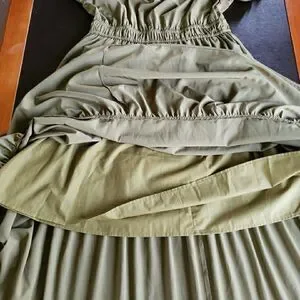 Entro Dress, Olive Green Maxi, Tiered Skirt, Puff Sleeve Dress, Cottagecore Fashion, Prairie Dress, Boho Style, Earth Tones, Large Maxi Dress, NWT Dress, Smocked Waist, Summer Fashion, Fall Transition, Casual Chic.