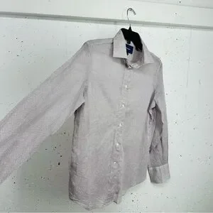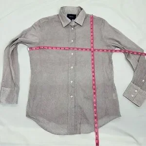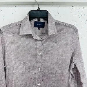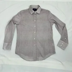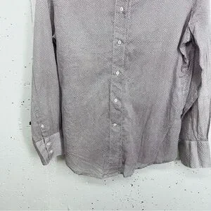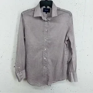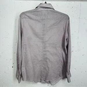 Faconnable Women's size 10 Gray Pink Dot Sheer Button Down Long Sleeve S…