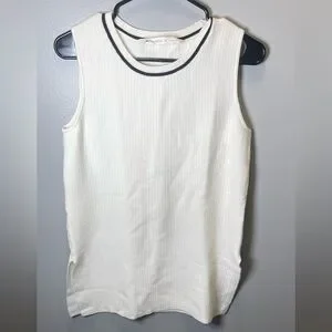 Athleta Women's On The Town Ribbed White Sleeveless Sweater Vest Tunic Size M