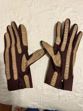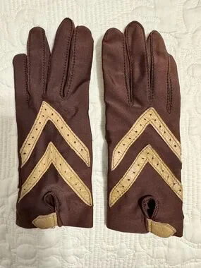 Classic Isotoner Brown Gloves with Tan Chevron Leather Accents