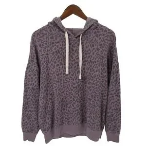 Womens M Purple Leopard Print Hoodie Casual Cozy Streetwear Layering Top